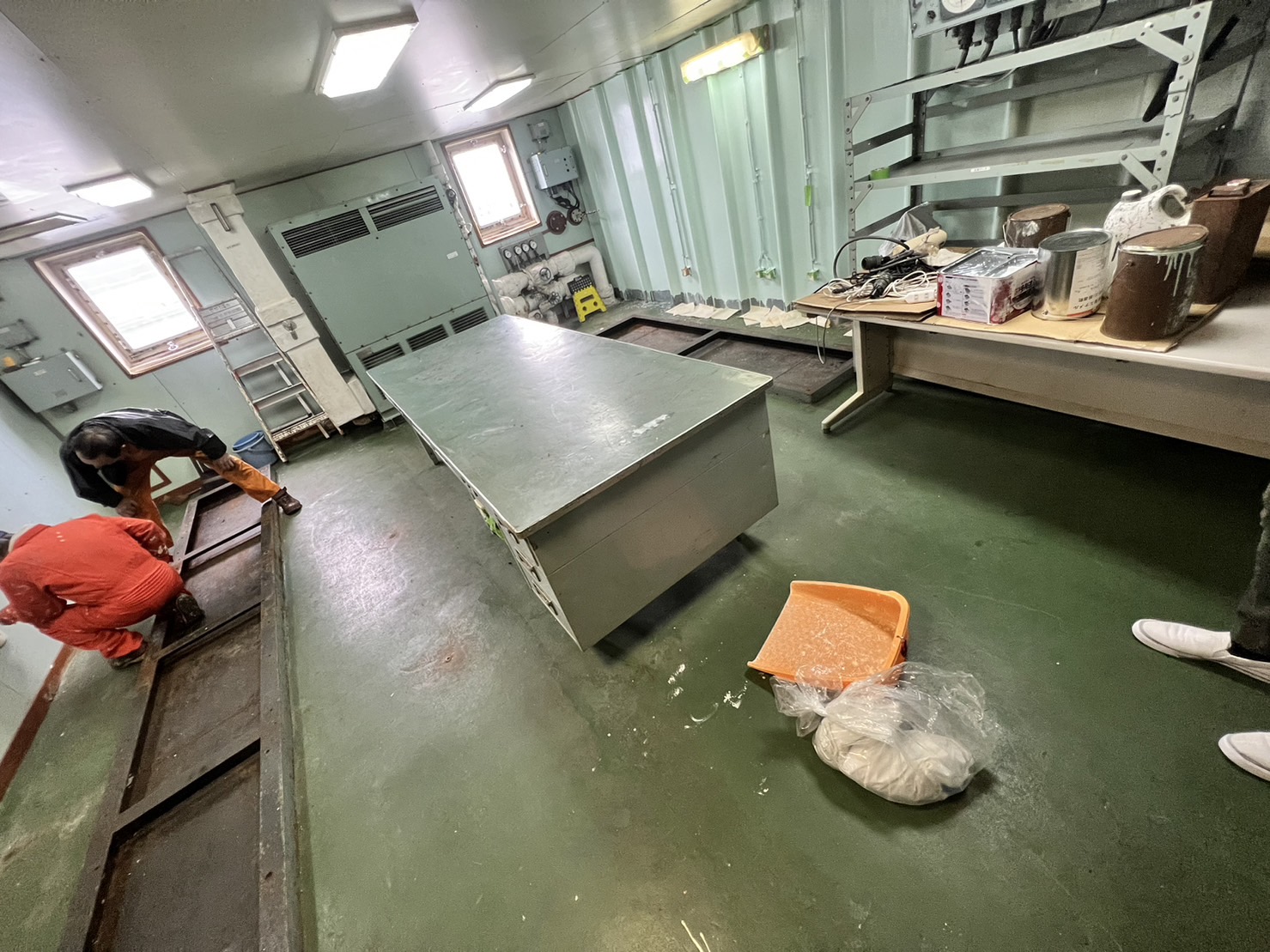 現地調査にお伺いさせてもらったところ、既存のビニールタイルの劣化が激しい状態でした。 機械作業の行われる部屋で油がただれていたので念入りに下地処理と脱脂を行いました 壁の凹凸が激しく高度な技術を求められる作業でしたが、仕上がりを見て喜ぶお客様の笑顔が見れて何よりでした。